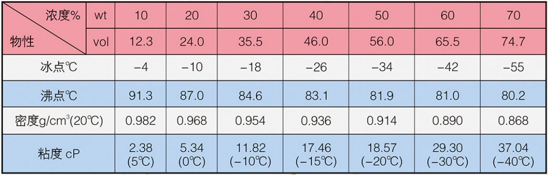 該系列產(chǎn)品具有使用溫度低、粘度小、比熱大、導(dǎo)熱系數(shù)高、載冷能力強等優(yōu)點。對碳鋼、不銹鋼、紫銅等金屬防銹性能優(yōu)良。在不同濃度條件下,可以在-80℃~常溫的溫度范圍內(nèi),作為工業(yè)載冷劑使用。根據(jù)工藝溫度要求與純凈水混合,稀釋成適當(dāng)濃度后應(yīng)用。其中: